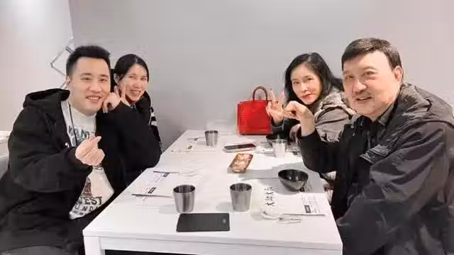 余天(右)和李亞萍與子女。