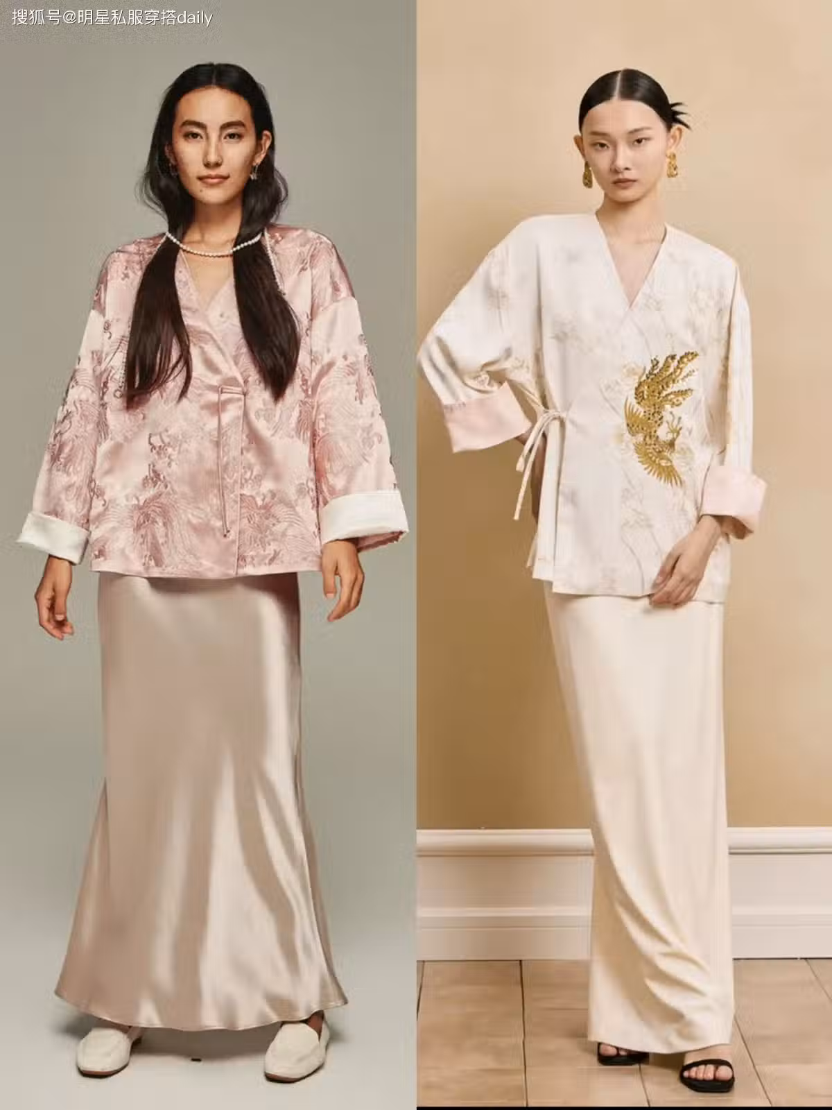 半身裙搭配斜襟式上衣,最能提氛圍感了,可以搭配有點光澤的緞面款式,不僅顯質感,而且搭配起來也很溫柔。