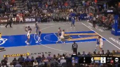 儘管盧尼的掩護讓克萊擺脫赫爾特,但三分出手時依然還是被小薩博尼斯干擾到了。換個角度看,克萊依舊有著頂級三分頂投能力。