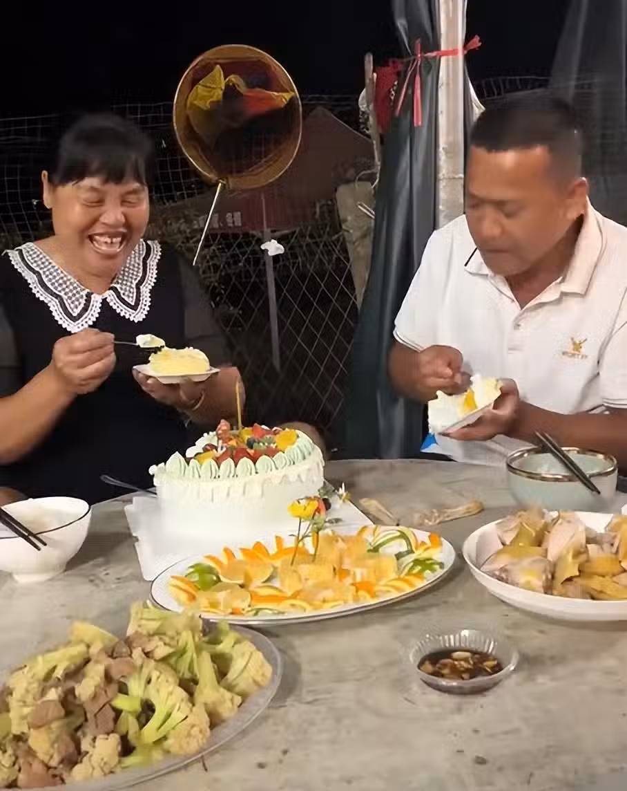 視頻一開始,全文茂給全媽準備生日禮物,用小刀切水果擺在一個盤子裡。看起來全文茂是學過擺盤的。隨後一段視頻,夫妻兩人吃晚飯,飯桌上有兩個菜,一個是白切雞,另一個是菜花炒肉。顯然,兩人的小日子過得很不錯。全紅嬋家裡的生活水平大大提高了。