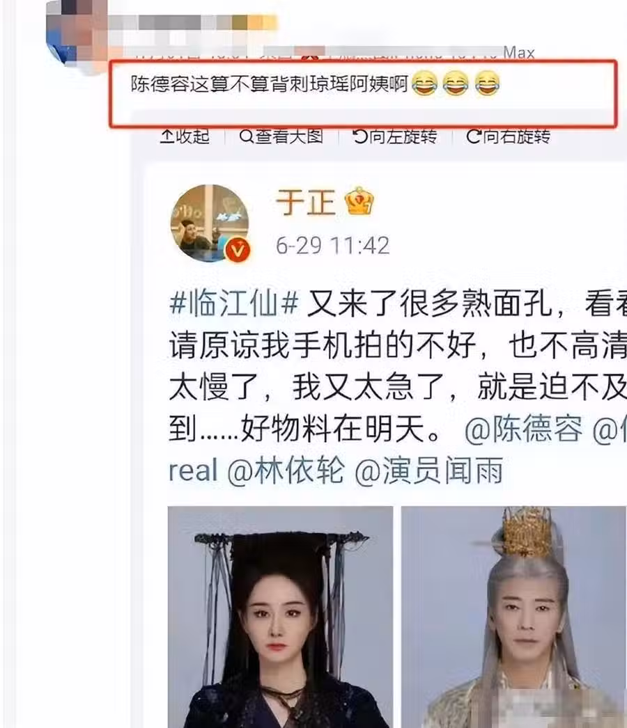 陳德容身《梅花烙》女主角,也得到過瓊瑤多部劇作的力捧,這次 居然不管不顧去演於正的戲,不怕瓊瑤氣死嗎?