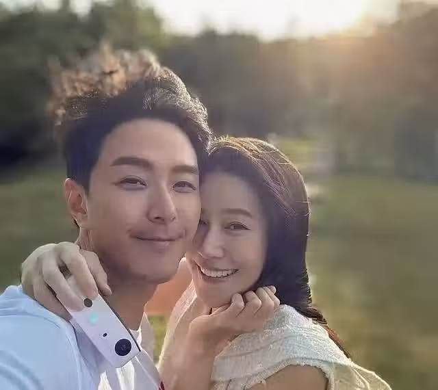 照片中,蕭正楠和黃翠如的狀態都特別自然。兩人基本上都是全素顏,在夕陽下黏在一起,相當甜蜜。
