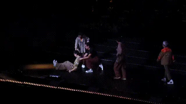 好險!71歲鍾鎮濤演出時意外摔傷,起身後又被絆倒,眾人摔成一片
