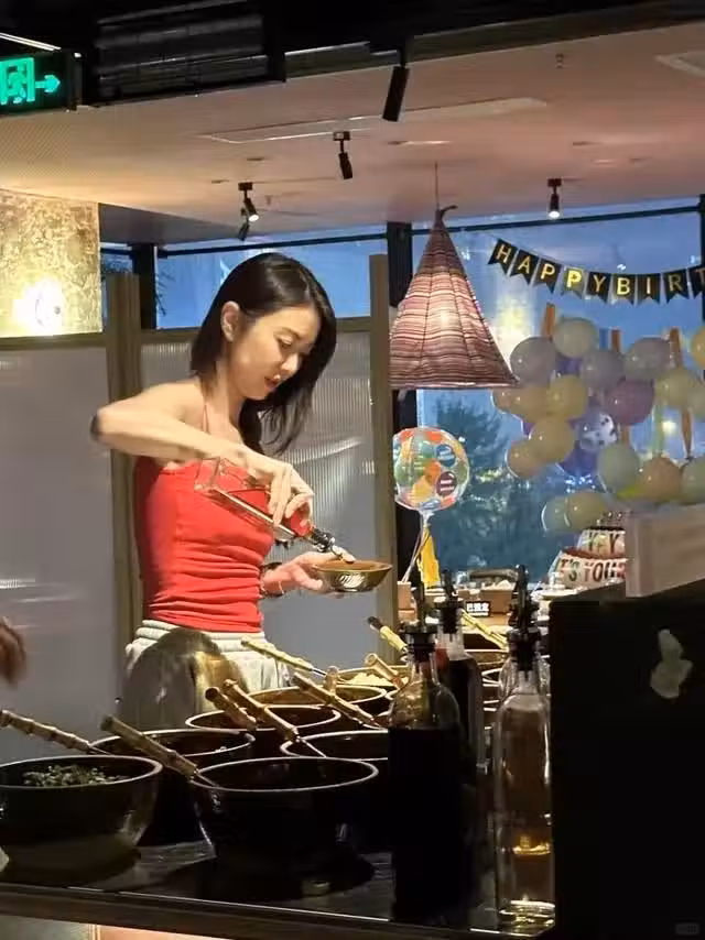 此行薛凱琪並非孤身一人,身邊有多名好友陪伴,其中有一位男士比較扎眼,因為他幾乎全程都沒有離開薛凱琪左右,對其進行無微不至的照顧,因此該路人懷疑此男士是薛凱琪的男友,尤其是調火鍋小料的時候,該男士一直幫薛凱琪加各種小料,他們的舉止間也看起來沒有很客氣,反而給人一種很舒服的感覺。