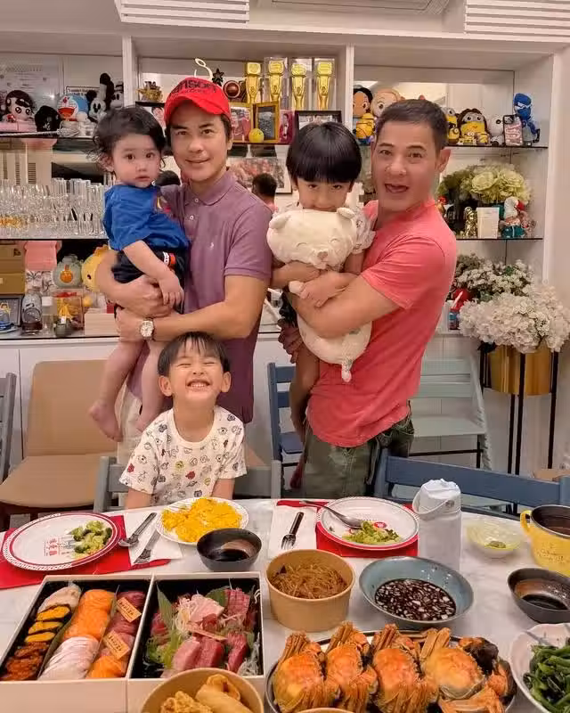 黃智賢57歲生日和3個乾兒子吃大餐,與太太丁克多年難得熱鬧一次