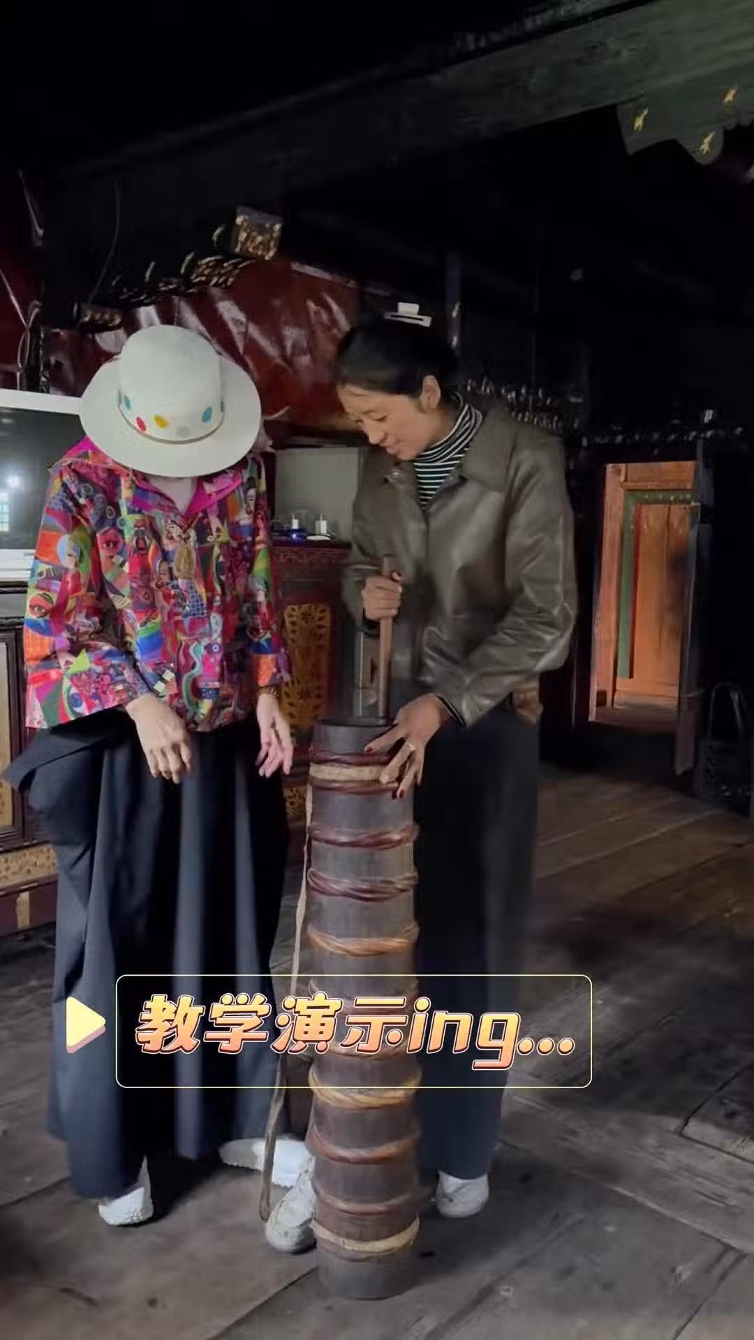 從照片中可以看出,她對這項體驗充滿了興趣,專心致志地投入其中。最終,夏台鳳親手做出了香氣四溢的酥油茶,並自豪地展示了她的成果。