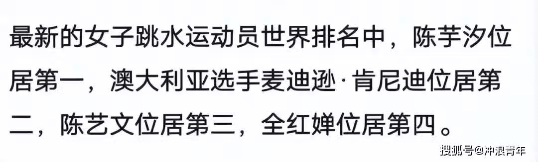 跳水排名「大爆冷」,陳芋汐世界排名第一,全紅嬋竟然連前三都沒進去!