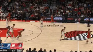 得益於隊友的掩護,CJ麥科勒姆長驅直入,不過最終的上籃被克林根封蓋掉。單看這個回合,克林根展現出非常明顯的身體優勢——幾乎未起跳就完成封蓋。