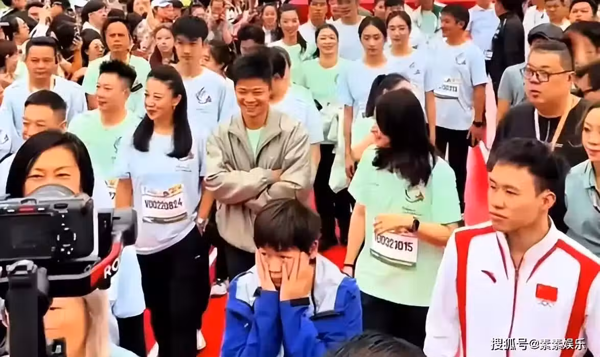 在走進永利全民跑的比賽現場時,郭晶晶和蘇炳添走在全紅嬋的身後,他們兩個人在暢聊。此時的紅妹似乎有一些沒睡醒的模樣,雙手捂著臉進場,畫面也特別搞笑。