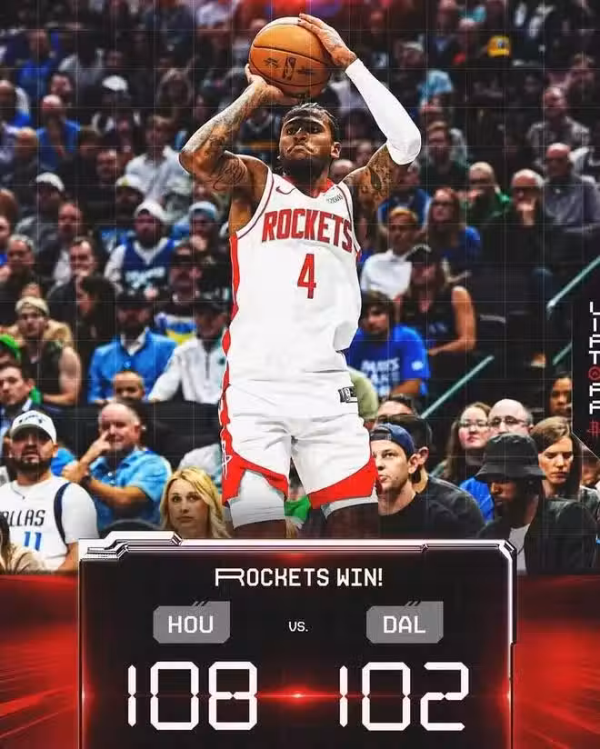 11月1日訊,火箭客場挑戰獨行俠。比賽開始,火箭反客為主打出10-3開局,獨行俠只能靠著東歐二人維持比分,內外開花的火箭很快就將比分拉開到兩位數;次節,火箭進攻放緩,不過獨行俠依舊找不到狀態,半場戰罷火箭領先13分;易邊再戰,歐文爆發獨砍14分,但其他人沒有太多貢獻,火箭三節結束仍然領先16分;末節,場上風雲突變,獨行俠在東契奇的帶領下將分差迫近至3分,關鍵時刻杰倫-格林再中3分,阿門-湯普森中投殺死比賽。最終,火箭108-102力克獨行俠。