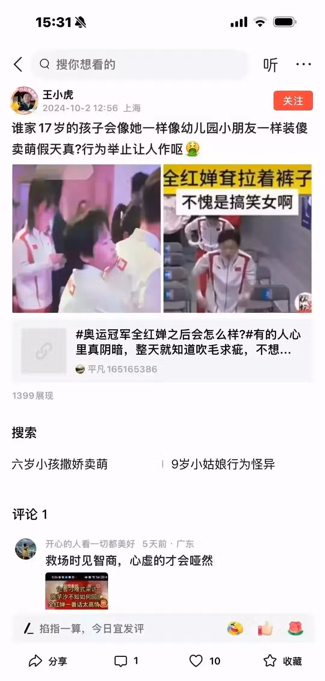 在這場針對全紅嬋的網絡暴力中,我們看到了許多正義的聲音。有網友表示:「全紅嬋是國家的驕傲,是我們學習的榜樣。她為了國家的榮譽付出了那麼多,我們怎麼能去攻擊她呢?」還有網友說:「那些網絡噴子們,你們有本事自己去跳水試試啊!看看你們能不能拿到冠軍!」