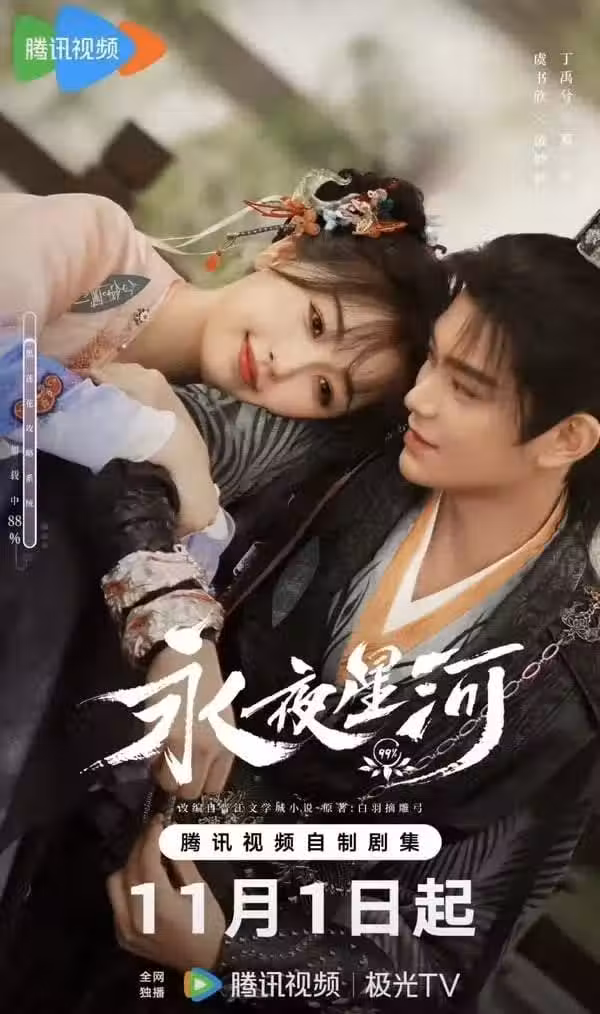 《永夜星河》改編自知名小說《黑蓮花攻略手冊》,獨特的穿書與攻略系統設定令劇情耳目一新,加上虞書欣、丁禹兮繼《月光變奏曲》後超甜二搭,在拍攝期間就大受矚目! 目前在騰訊平台上的預約數已突破350萬,許多網友不禁回憶起2022年虞書欣的《蒼蘭訣》和趙露思的《星漢燦爛》同時爆紅的盛況,期待《永夜星河》與《珠簾玉幕》能再現當年不相上下的熱播景象!
