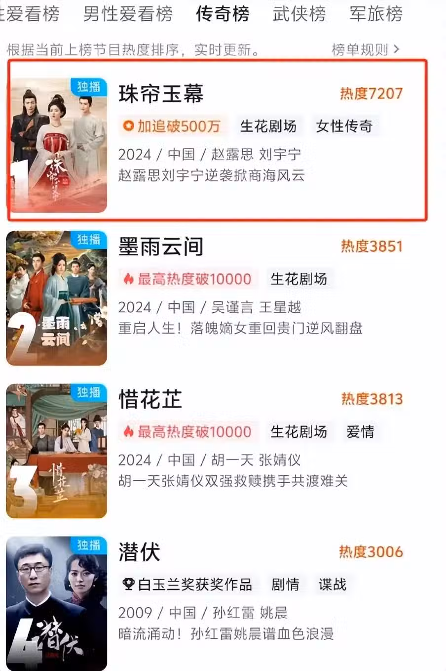 古裝劇《珠簾玉幕》收視炸了,打了多少資方的臉,趙露思又賭對了