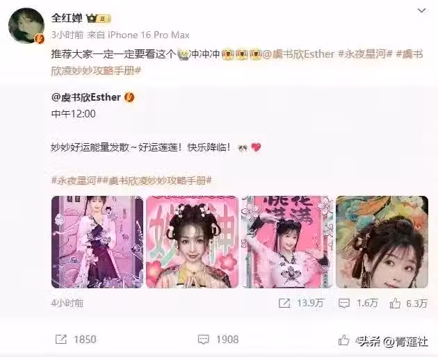 11月1日,奧運冠軍全紅嬋在社交媒體上發文,為虞書欣的新劇熱情打call:「推薦大家一定一定要看這個!沖沖沖!」隨後,虞書欣也在評論區溫馨回覆:「謝謝全妹,期待去看你的比賽!!」這一番有愛互動,瞬間在網絡上炸開了鍋,網友們紛紛驚呼「夢幻聯動」,表示「又雙廚狂喜了!全妹與小魚,兩個特別可愛的小女孩」。