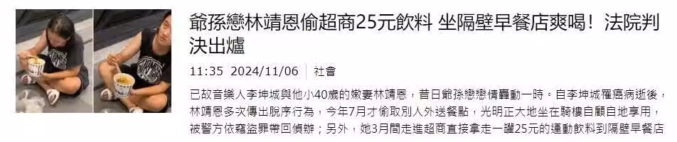 「爺孫戀」林靖恩又出事:偷飲料被罰3000元,已被判盜竊罪