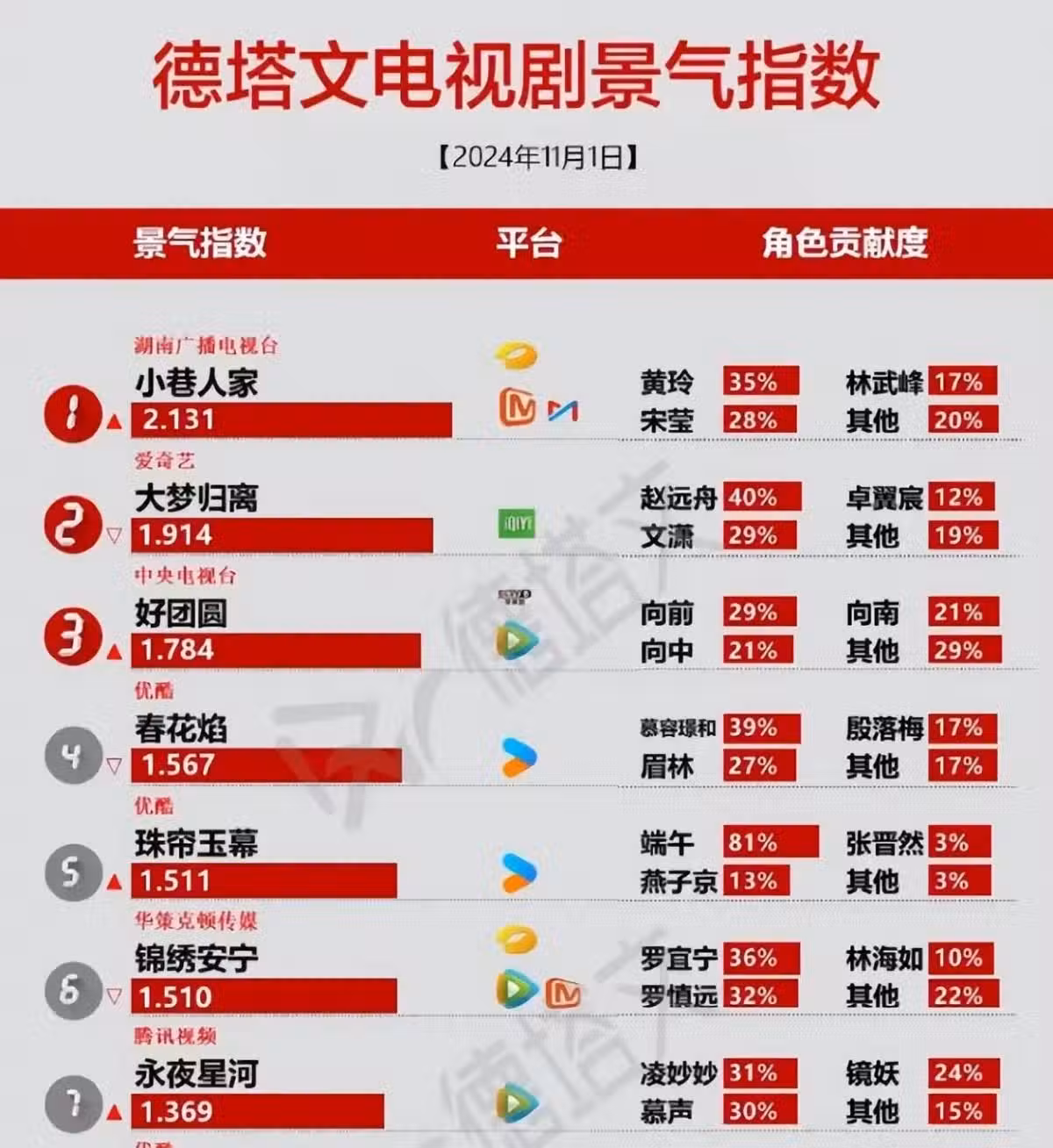 但這次奪冠的卻是看似平平無奇的《小巷人家》,《小巷人家》的熱度指數已經實現了登頂。