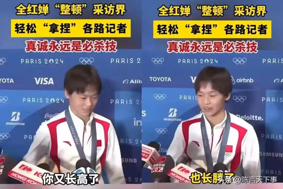 面對記者的另一個問題:「考慮過學英語嗎?」全紅嬋的回答更是讓大家忍俊不禁。她毫不掩飾地說:「不用了,我不想知道。」這個回應直接「干懵」了記者,卻也引得網友笑聲不斷。