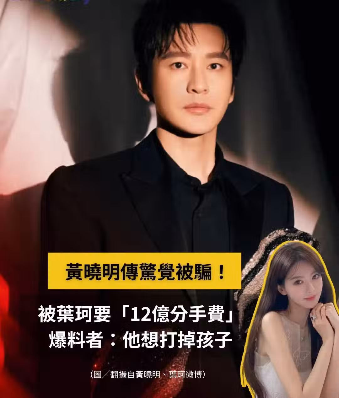 黃曉明傳驚覺被騙!被葉珂要「12億分手費」爆料者:他想打掉孩子