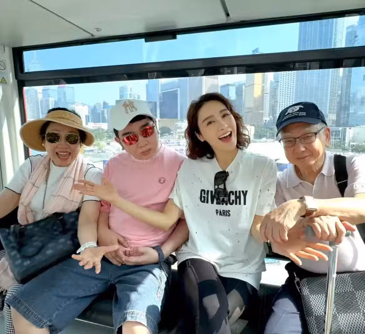 黎姿帶父母及弟弟出遊,一家四口搭摩天輪幸福歡樂,黎嬰狀態不錯