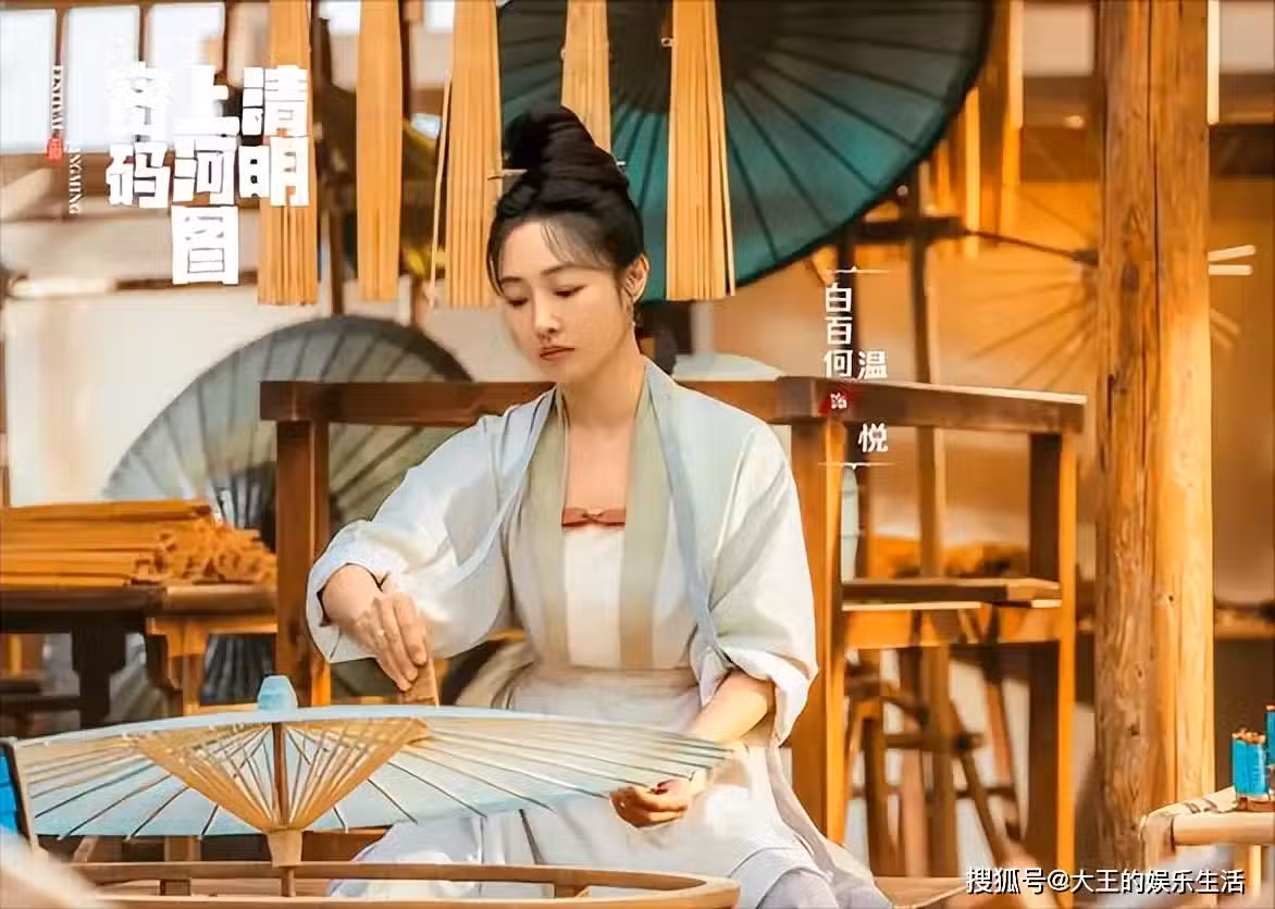 在《清明上河圖密碼》中,她以淡藍色的古裝服裝呈現出淑女質樸的一面,與張頌文的默契配合讓人慾罷不能。