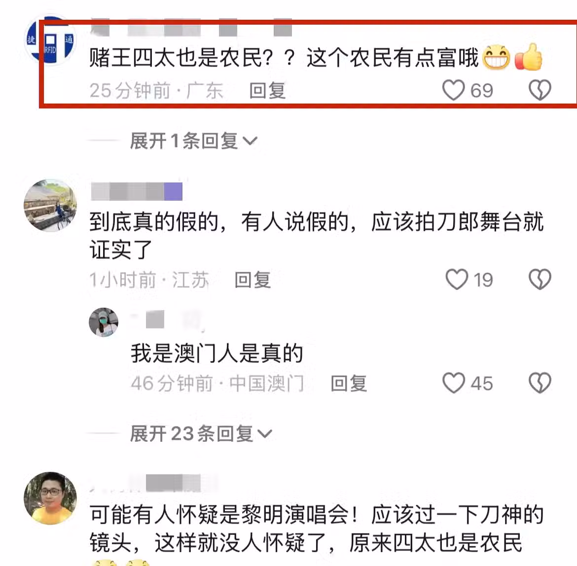 基於這樣的畫面,很多網友便展開了嘲諷:哇塞,梁安琪也來了,刀郎老師這該死的魅力啊、賭王四太也是農民?這個農民有點富哦、梁安琪跟我們一樣也是農民工嗎……