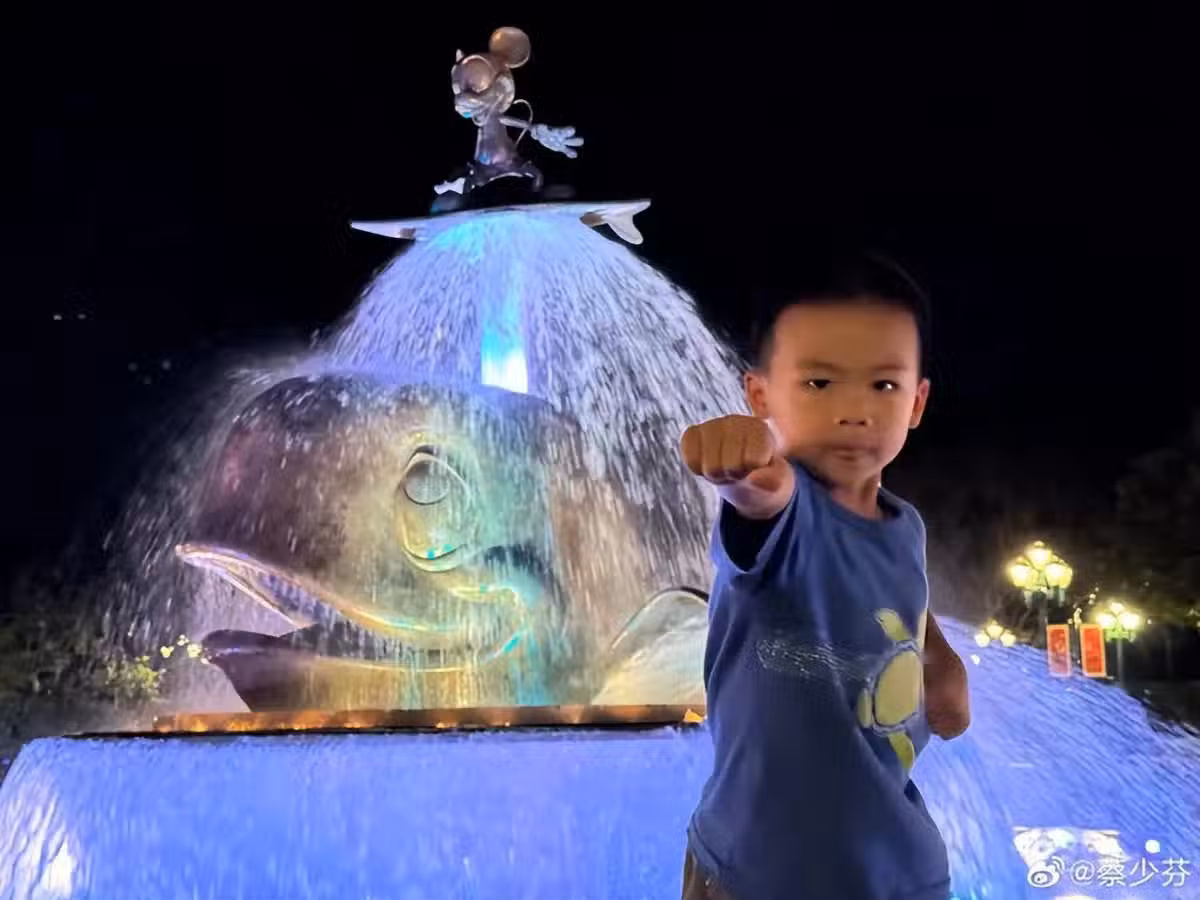 上圖裡,魚蛋一臉正氣地打著拳,乍眼一看,還以為是張晉小時候,父子倆完全就是餅印既視感,太像啦。