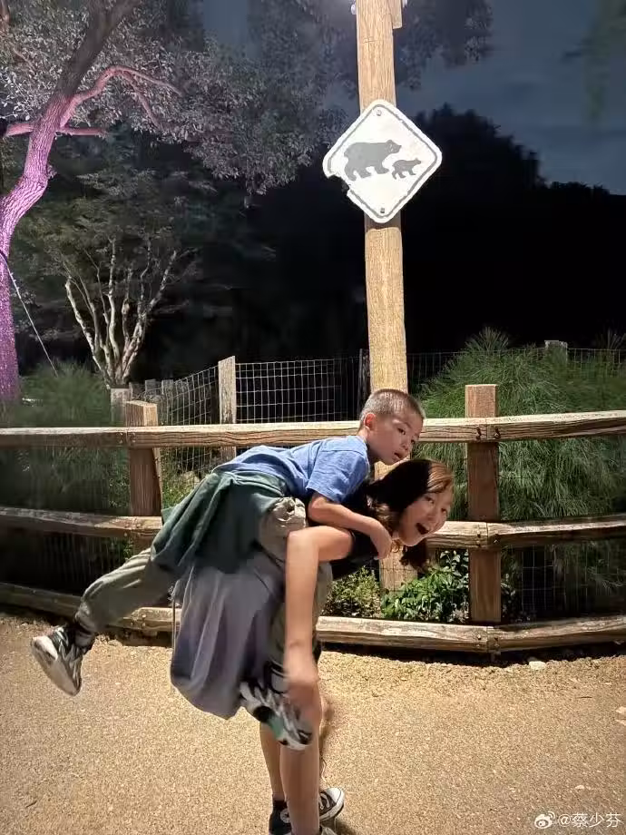 魚蛋也相當喜歡姐姐,在姐姐背上的小傢伙玩得不亦樂乎,姐弟二人開開心心互動,老母親蔡少芬應該是最欣慰的一個。