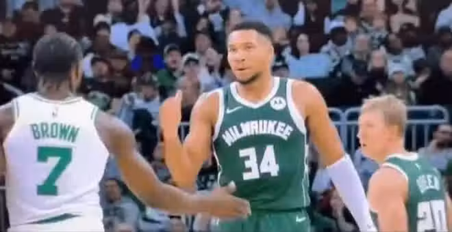 杰倫布朗沒提他被字母哥肘擊的那個動作,但是說字母哥在比賽當中,曾經假裝在把他肘擊倒地時想跟他擊掌,結果布朗伸手了,字母哥卻虛晃了他一下,不僅沒擊掌,還收回手摸了個頭,第2次想再找布朗擊掌的時候,布朗理都不想理他了。