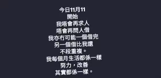 而最新到今日(11日)雯雯在限時動態稱萌尋死念頭,直言不會再乞再借:「今日11月11(日)開始,我不會再求人,不會再問人借,我也沒有可能一個借完,另一個借給我還,不斷重複。我每個月生活都是一樣,努力、改善,其實都是一樣。」