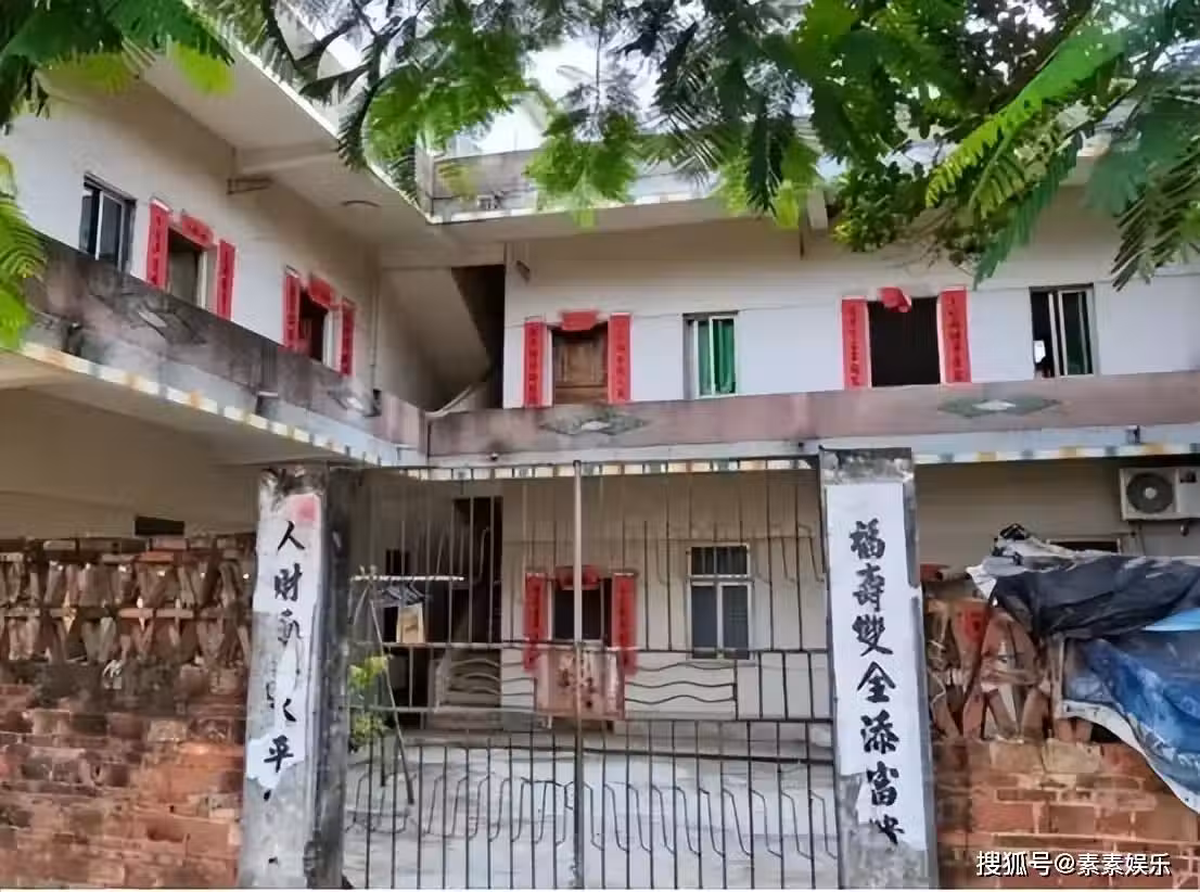 該風水先生手拿羅盤在全紅嬋老家的大門前在看風水!