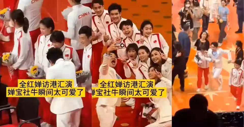 然而更有趣的是,在兩人道別時,全紅嬋不斷地向王祖藍揮手說:「不好意思,不好意思,我們先走了」。即使王祖藍已經表示沒關係,但全紅嬋仍持續揮手,直到身旁的隊友將她拉走才願意離開,而這時王祖藍的表情仿佛是在說:「終於送走了!」相當有趣。