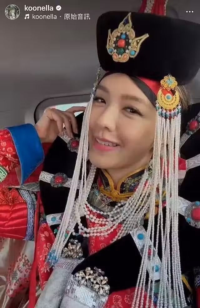 從短片中不難看出,官恩娜為了更加融入當地,還專門穿了蒙古服裝,這身衣服整體以紅色係為主,還帶有一套頭飾,官恩娜穿上也是盡顯其曼妙的身姿。