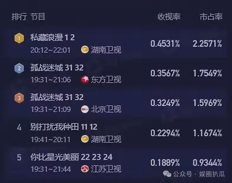 《私藏浪漫》這部劇當時的收視率當時十分突出,在開播當天,實時收視率更是達到了峰值,領跑全衛視。