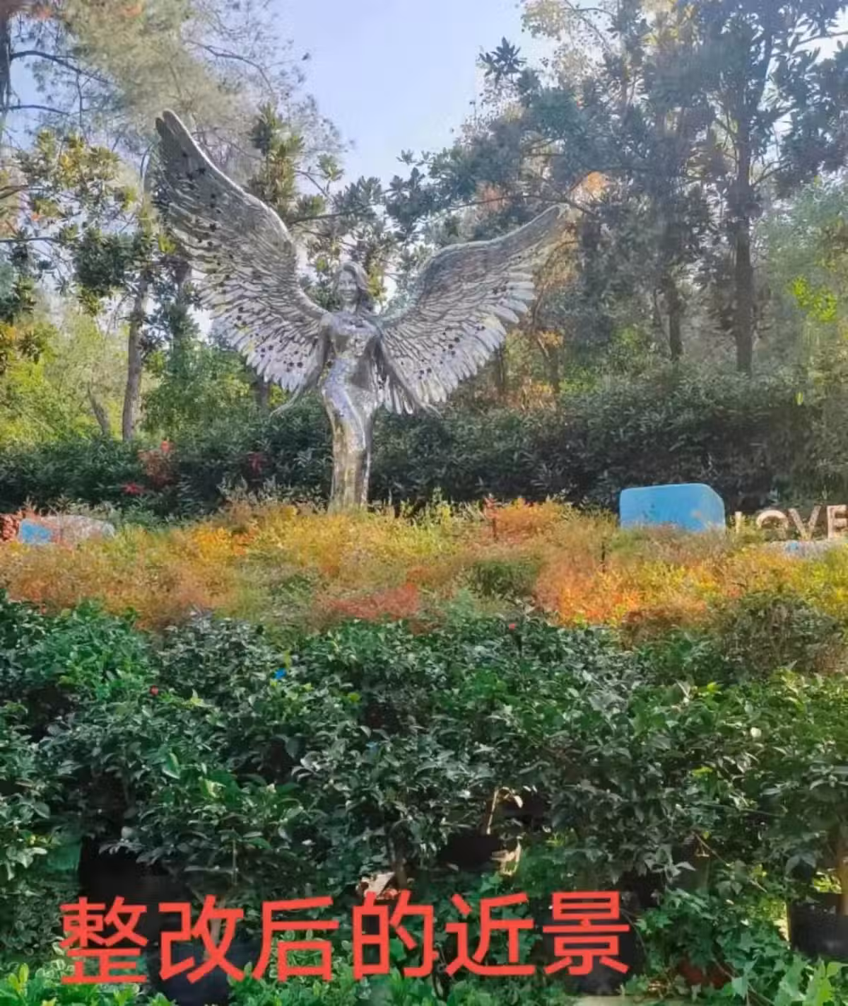 地的前方不僅雜草叢生,而且美麗的台階以及旁邊印有紀念李玟的台柱子也被遮擋,下方擺放的鮮花看起來更是凌亂不堪,像是以前擺放在中間被丟棄在這裡一樣。