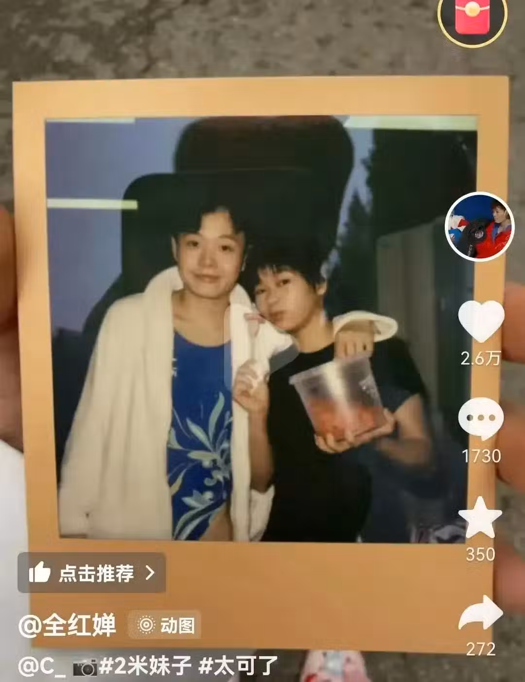 全紅嬋曬出和陳藝文合照,兩杯果茶放在嘴裡賣萌,,陳藝文隔空喊話