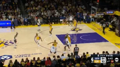 納茲·里德的掩護很好讓迪溫琴佐和濃眉形成一對一。不過前者的投籃還是被濃眉完美的封蓋掉。