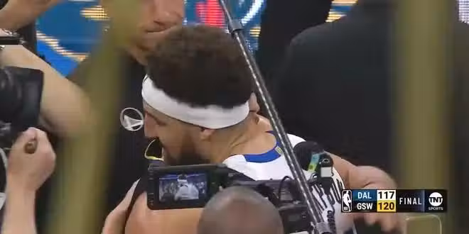 我們看庫里的比賽15年了,他這套連招慶祝動作全用一遍,這是唯一的一回。這就是庫里真正的求勝慾望,一個超巨相應的時候,有多強有多恐怖?這就看到了,只有他特別想贏的時候,才會因為一場比賽如此的激動,當然可能也是因為克萊湯普森賽前那句話刺激到了庫里,湯神說:「獨行俠是更有天賦的球隊,他們有超級巨星。」庫里才會這麼宣洩,告訴你這裡也有超巨,這也才真正詮釋了什麼叫:完美的重逢,精彩的告別。