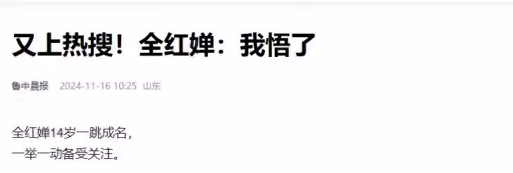 信息來源:又上熱搜!全紅嬋:我悟了 魯中晨報 2024-11-16