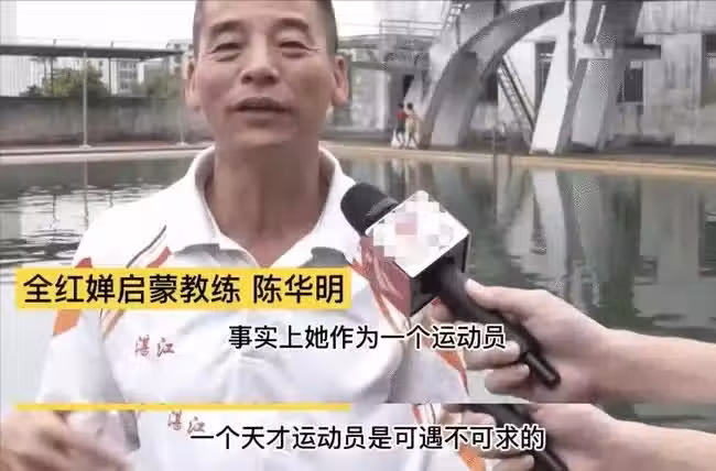 全紅嬋的職業生涯是在湛江體校開始的,湛江體校作為一個基層訓練單位,硬體設施並不是很好,但是運動員們都非常的努力,教練們也盡職盡責,所以培養出了不少好苗子,全紅嬋在這裡的啟蒙教練是陳華明,他為全紅嬋走上更大的舞台付出了很多的心血,在全紅嬋奪冠之後,有記者對陳華明進行了採訪。