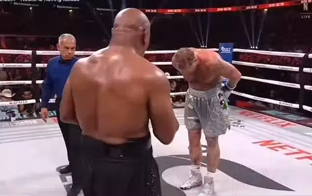賽前,58歲的泰森豪言不斷,自信能打敗27歲的保羅。但是,拳怕少壯,從比賽的過程來看,27歲的保羅完全占據了上風。比賽前兩回合,泰森有一些攻勢,但是,從第三回合開始,他出拳頻率已經大幅下降,腳步移動也相當緩慢。局間休息,大口喘氣的畫面,證明老拳王真的累壞了。
