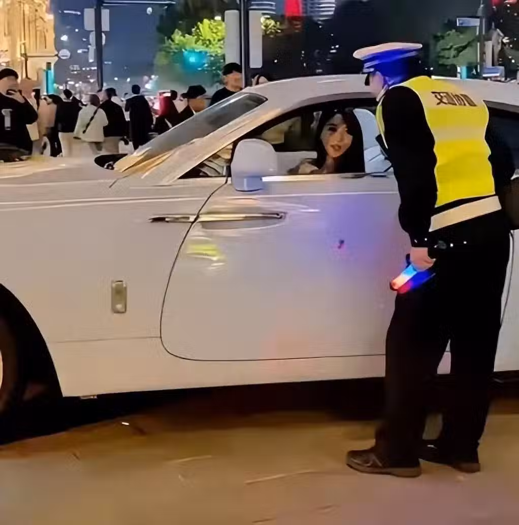 當天她打扮比較休閒,開著豪車被協助警給攔了下來詢問情況。