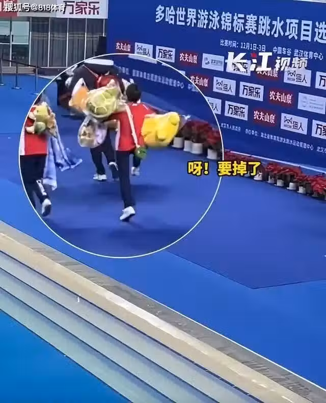 全紅嬋抱著皮卡丘,拿著一堆玩偶,感覺十分吃力。
