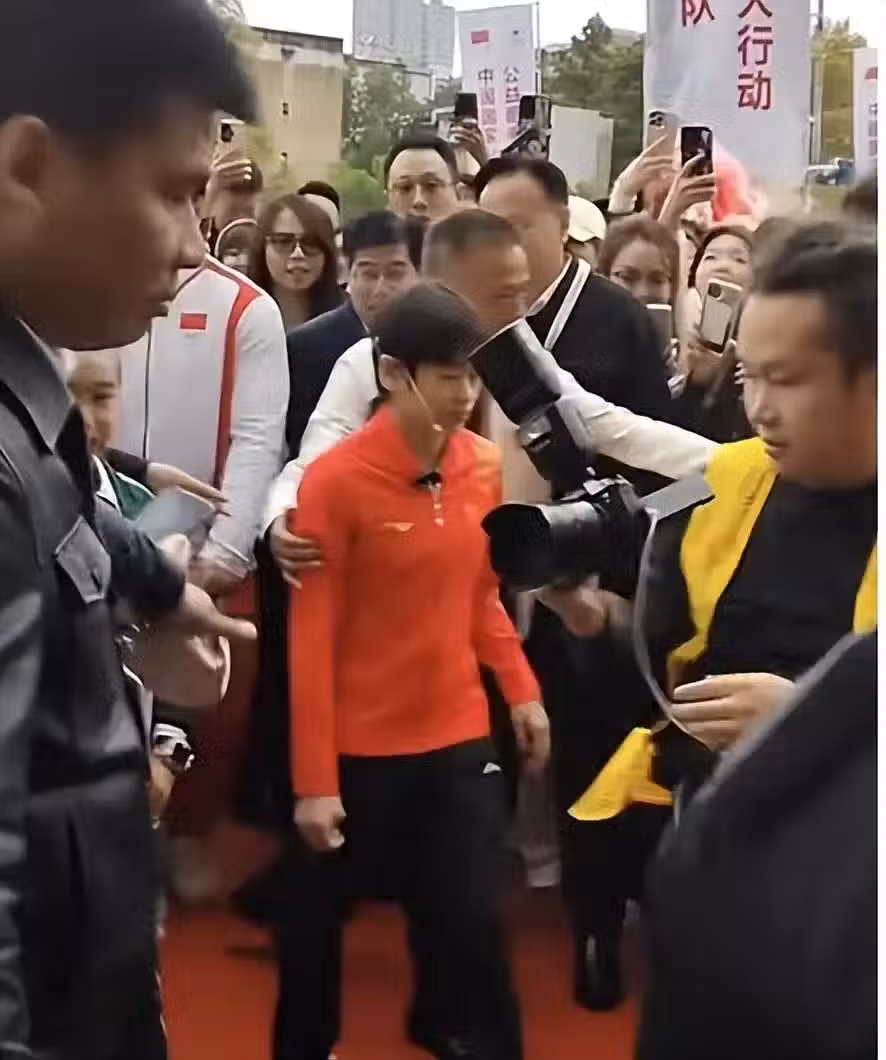 值得一提的是,全紅嬋到達該校校園後,由於圍觀的學生們太多,現場維持秩序的工作人員都快攔不住了,可謂是相當混亂,搞得全紅嬋都不知所措了,整個人都懵圈了,任由工作人員拉著走。