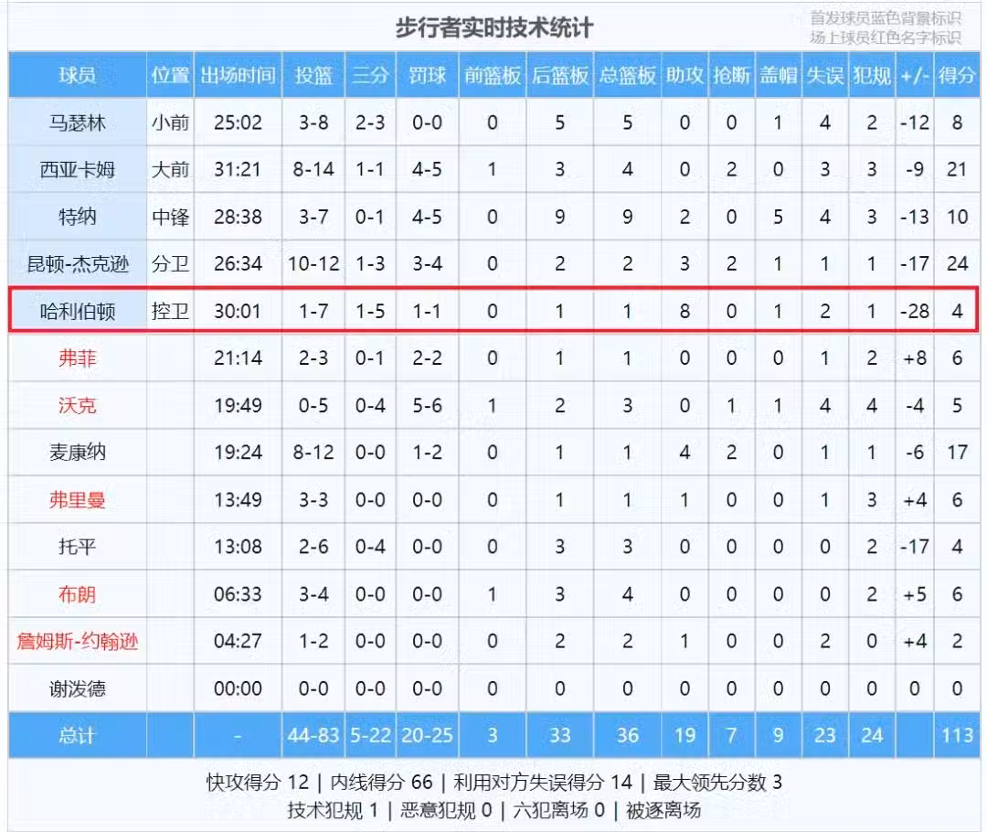 跟哈利伯頓對位的范喬丹,14投6中,三分8中4,罰球3中2,得到18分2籃板6助攻4搶斷,正負值+30全場最高。一個正負值是-28,另一個則是+30,大家可以算算差多少。哈利伯頓本賽季場均正負值-4.1,僅排名聯盟第242位。