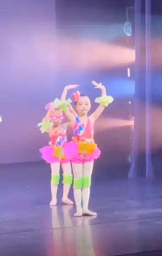 大女兒上台演出時,台下帶著小女兒觀看的熊黛林看到台上閃閃發光的大女兒再次誇讚她很漂亮,還不忘鼓勵小女兒也要像姐姐一樣試著表演。