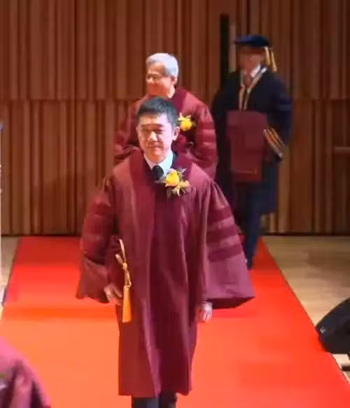 梁朝偉和黃仁勛先後入場,兩人身穿紅色學士服,梁朝偉用英文發表感言,坦言從未在本科生活過,不知如何說起,最終從42年的演藝經驗中獲得一些心得,憑住勤力、有紀律等要素,加上大量的幸運,才達致今日成就。