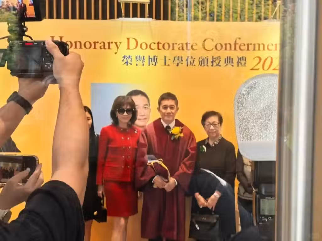 梁朝偉獲榮譽博士,梁媽媽佩戴百萬胸針露面,劉嘉玲現場鼓掌慶賀!