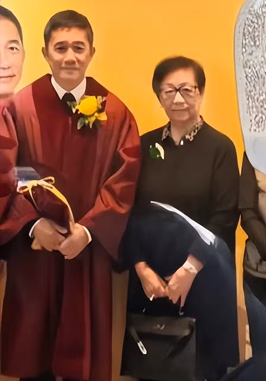 梁朝偉獲榮譽博士,梁媽媽佩戴百萬胸針露面,劉嘉玲現場鼓掌慶賀