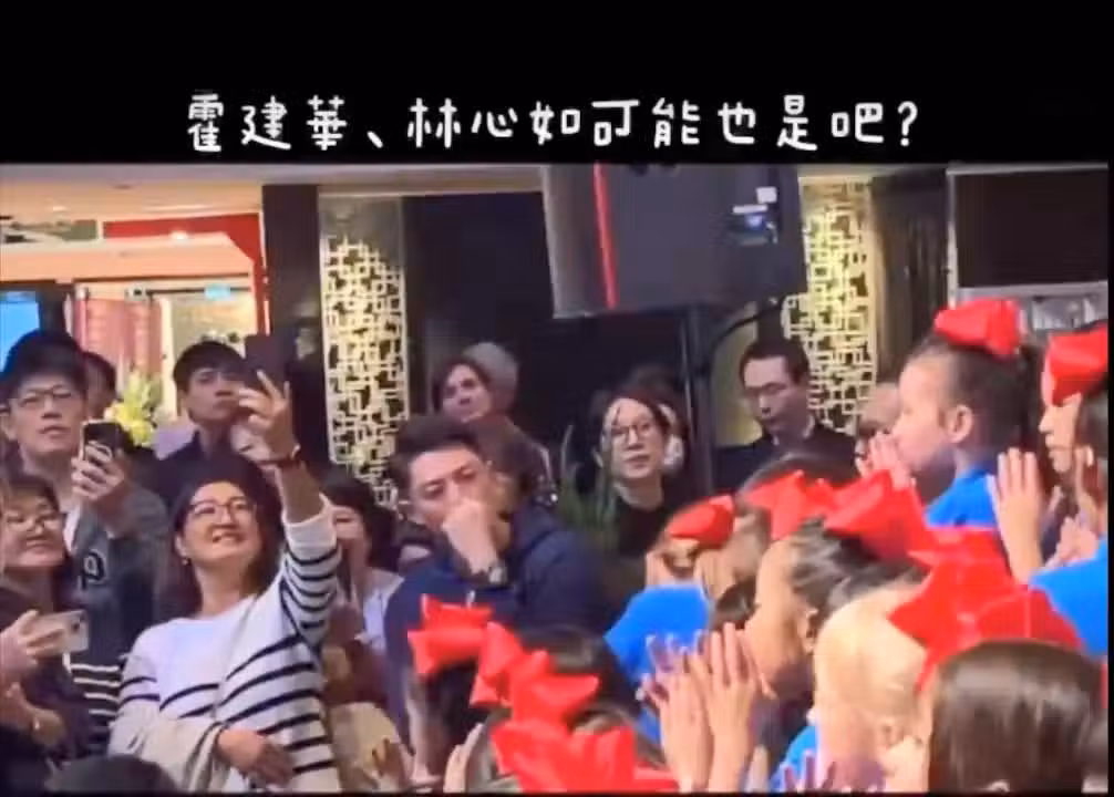 林心如後來還是發現了路人的手機鏡頭,戴著帽子的她,躲到了老公身後。