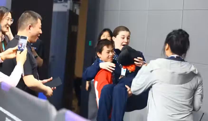 全紅嬋跳水世界盃摘銀 將英國銅牌得主「公主抱」